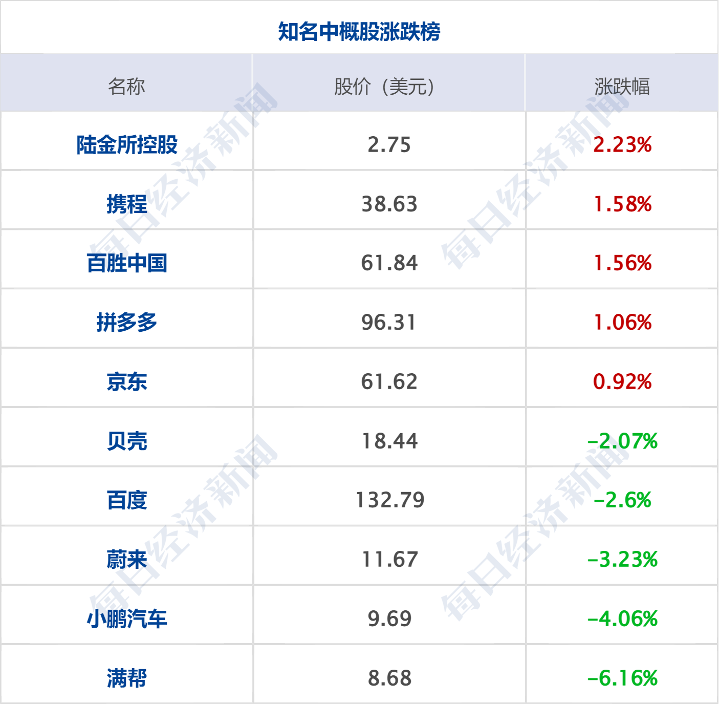 北京时间1月25日凌晨,美股三大指数收盘涨跌不一,纳指跌0.27%,标普500指数跌0.07%,道指涨0.31%。大型科技股多数下跌,谷歌跌超2%,亚马逊跌超1%,脸书、微软小幅下跌;奈飞、苹果涨超1%。热门中概股涨跌不一,纳斯达克中国金龙指数跌0.37%。满帮跌逾6%,小鹏汽车跌超4%,蔚来跌超3%,百度、贝壳等跌逾2%;好未来涨超3%,携程网、唯品会涨超1%,腾讯音乐、京东等小幅上涨。